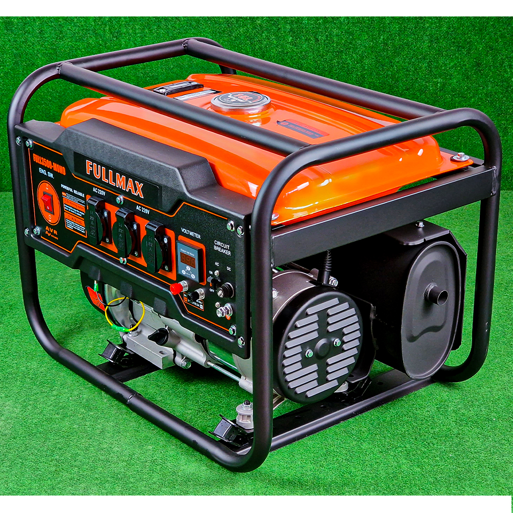 Монофазен бензинов генератор за ток Fullmax FULL3500 с ръчен стартер и автоматичен регулатор на напрежението.