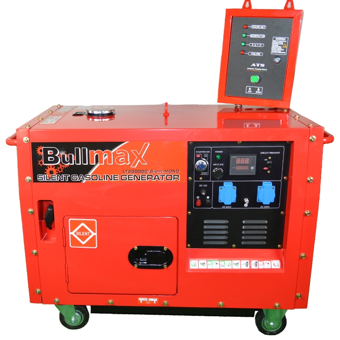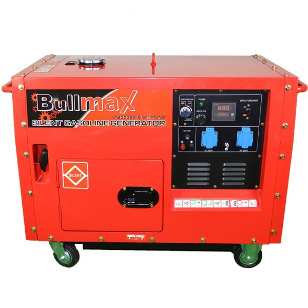 Обезшумен монофазен бензинов генератор за ток, Bullmax, 7.5kW, водозащитен.