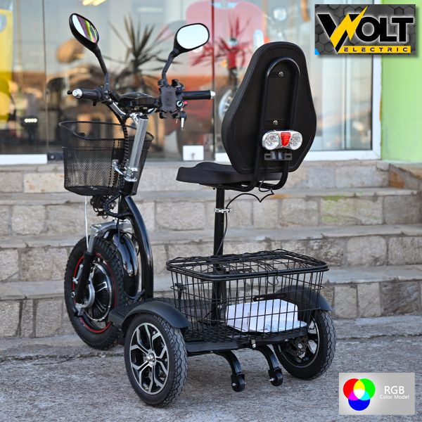 Удобна и стабилна при завои поради удължената задна ос от гума до гума 68 см. Широка и удобна платформа за краката, мощна, с удобна седалка с облегалка, дисплей за нивото на батерията и крачна спирачка. Втори, допълнителен дисплей с показания за скорост, изминато разстояние и др. Голям предна пазарска кошница, държач за мобилен телефон, USB порт за зареждане на мобилни устройства по време на движение.