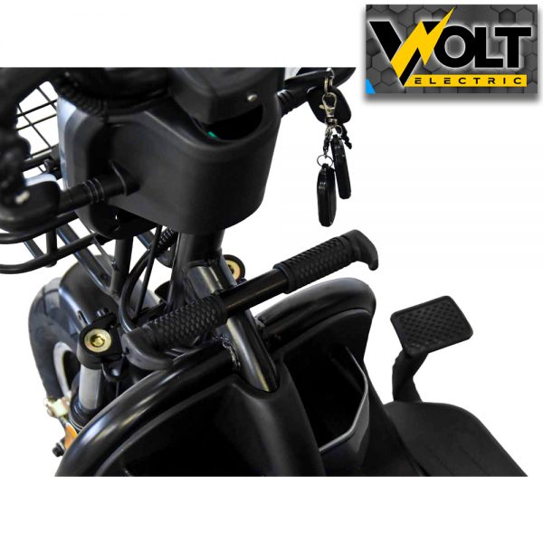 Електрическа триколка Volt Electric C1. Триколката е с дигитален LCD светещ дисплей с показания за скорост, изминато разстояние, ниво на батерия, светлини и др, три нива на скоростта. Предна и задна ръчни спирачки, удобна крачна спирачка. Пълна LED ветлинна окомплектовка- фар Angel Eye, предни и задни мигачи, стопове. Голям заден багажник с ключалка. Триколката е с вградена втора седалка за допълнителен пасажер, която се появява отдолу, когато се премести основната седалка назад, както и трета малка седалка отпред, за дете, която може да се сгъва надолу и не пречи, когато не се използва.