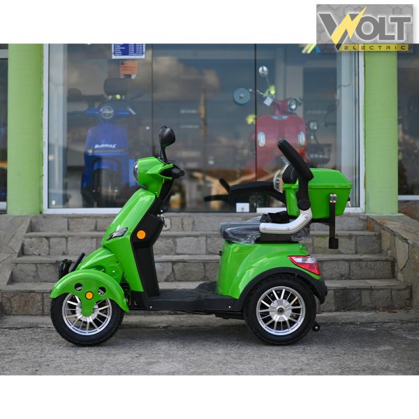 Нов модел електрическа четириколка, оборудвана с магнитна спирачка и рекуперация. Има удобна регулируема седалка с облегалка и повдигаеми подлакътници. Поставка отстрани за помощни средства за придвижване- бастун, патерица или чадър. Снабдена с колан за шофьора. Максимално замерена мощност на двигателя- 1500W. Товароносимост- 180кг. Преодолява наклони до 22°. Оборудвана с пълна LED светлинна окомплектовка- предни и задни мигачи, стоп, габарити и LED фар. Голям цветен дисплей с показания за пробег, моментна скорост, ниво на батерията и светлини. Моделът е изключително подходящ за инвалиди и възрастни хора. Магнитната спирачка осигурява плавно и сигурно спиране, дори без да се натиска някоя от основните спирачки. Осигурява и плавно спускане по наклони и стръмни участъци. Рекуперацията при натискане на спирачка или при движение по стръмни участъци зарежда обратно батерията.
