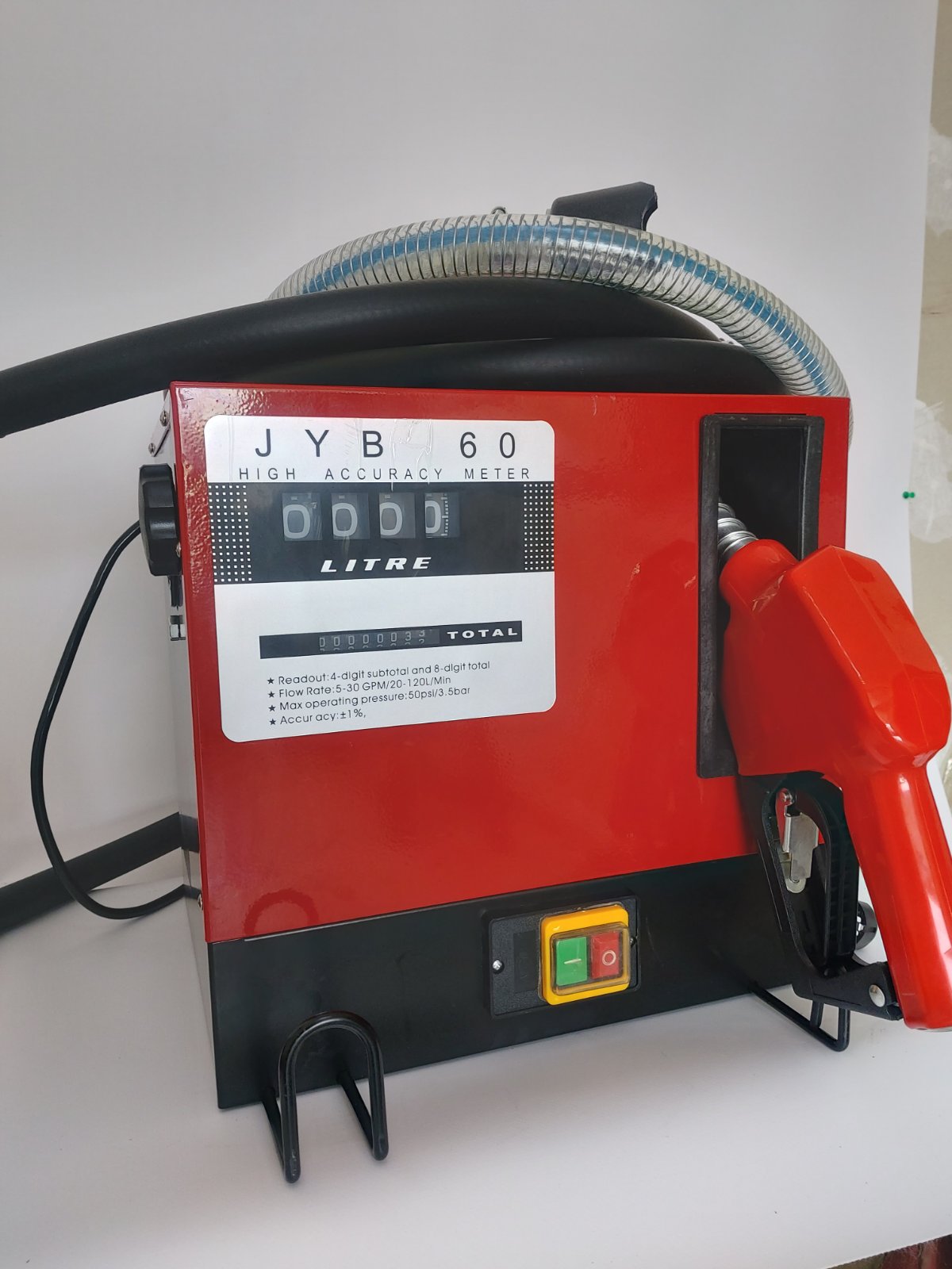 Помпа за трансфер на агресивни течности и гориво, модел ACFD60А. Основно се използва за нефтопродукти като дизел и керосин. Има разходомер с дисплей. Работи при напрежение 230V. Дебит:60L- 120L в минута. Мощност на мотора: 550W. Максимално налягане 3 бара. Работи в температурни граници от -25 до +55 градуса. В комплект с два маркуча за гориво. Гаранция: 12 м. за ю.л. и 24м. за ф.л.