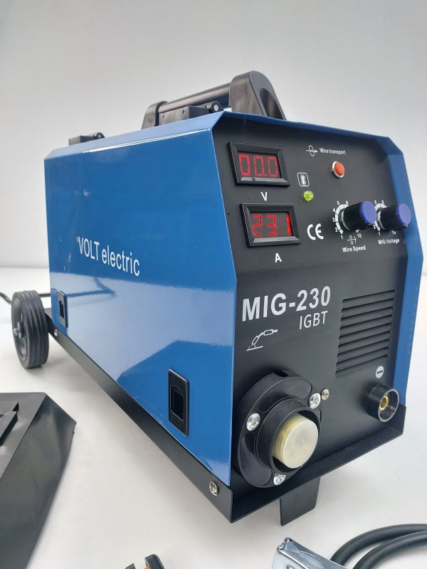 Професионално инверторно телоподаващо устройство MIG 230А Volt Electric Professional, за монофазен ток. Висок клас технология. Регулиране на заваръчния ток/плавно/ 20-230A ампера, монофазен /230V/. Степен на защита – IP 21S. Работи с ролки от 1 и 5 кг. Окомплектовани са с еврошланг за МИГ/МАГ заваряване, щипка маса, маска, чукче с четка, оригинални ръкавици за заваряване от телешка кожа. Предназначен е за ремонтни и сервизни дейности. Поради широкия спектър на заваряване с HITECH ТЕХНОЛОГИЯ, заварява почти всички видове метал и е удобен за монтажни заварки от професионалисти и начинаещи заварчици.