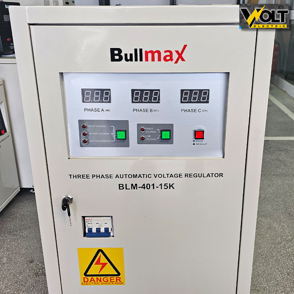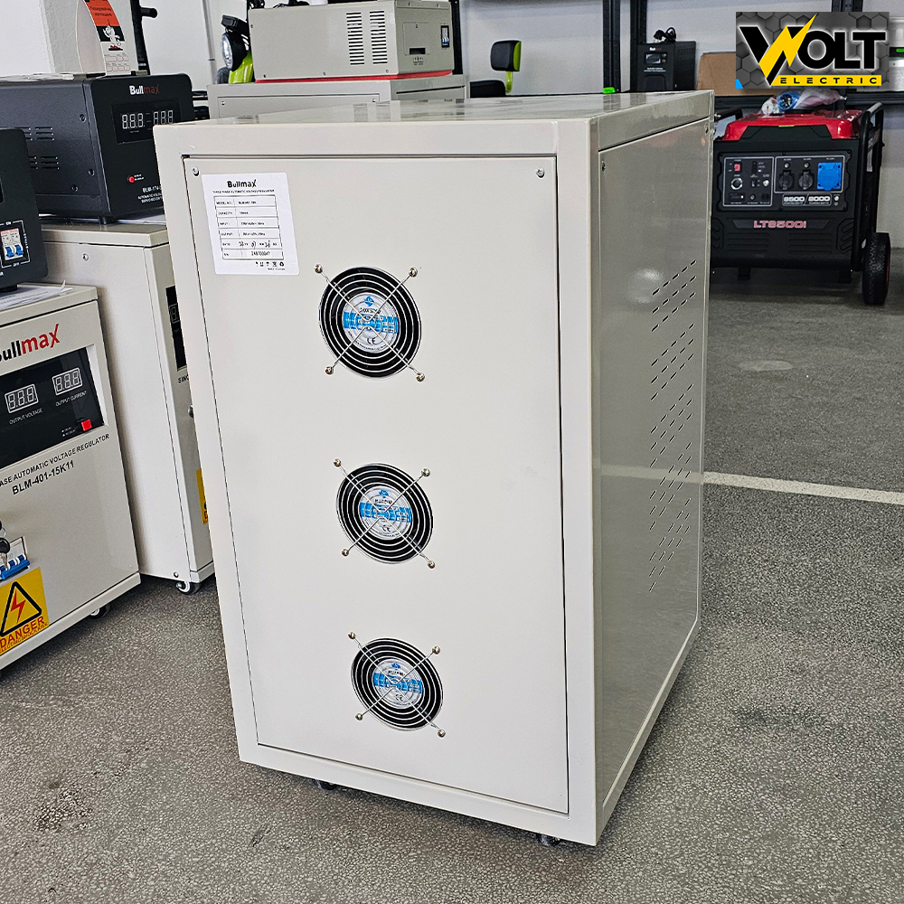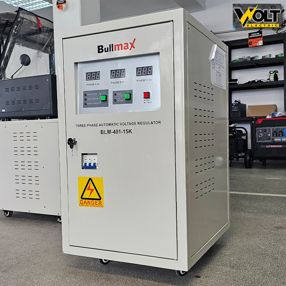Изберете Bullmax Трифазен стабилизатор за ток и напрежение 15KVA/12kW за надеждна защита, оптимална производителност и дълготрайна работа на вашите индустриални устройства.